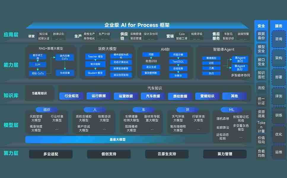 彩虹多多问学智车解决方案是一套基于AI技术的汽车行业智能化系统,,,覆盖从底层算力到顶层AI应用的全栈方案。。方案由算力层、、模型层和应用层组成:算力层,,,方案支持多种一体机配置,,,具备云端灵活部署、、多云适配以及动态优化计算资源的能力;模型层,,彩虹多多问学平台版提供了企业级AI应用一站式构建与管理平台,,,,支持基于后训练强化技术的汽车企业专属模型的训练、、、、评测和运营;应用层,,彩虹多多问学DeepSeek版提供包括超级员工、、、智能招采、、、智能营销、、、智能客服、、、AI for BI等一系列解决方案,,,,可助力汽车行业实现数字化转型,,,,让管理更智能、、、、响应更敏捷。。